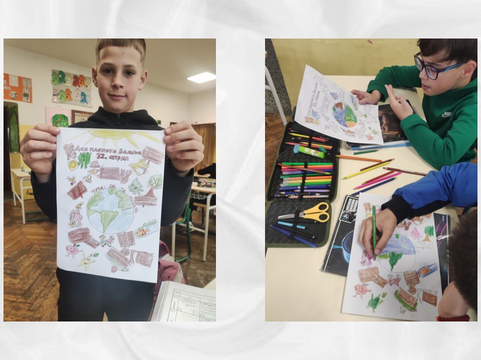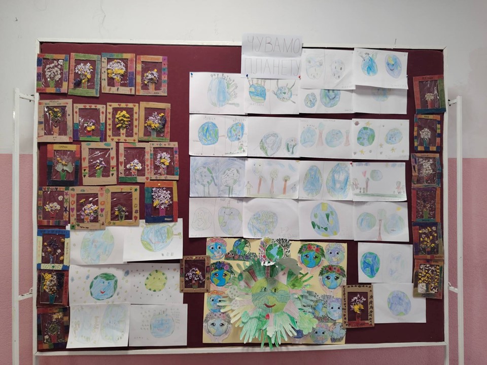 Učenici prvog razreda su kroz kreativne radionice učili kako da čuvaju našu planetu. Slušali su pjesme i poučne priče o zaštiti životne sredine, a zatim izrađivali likovne radove koji sada krase hol škole.