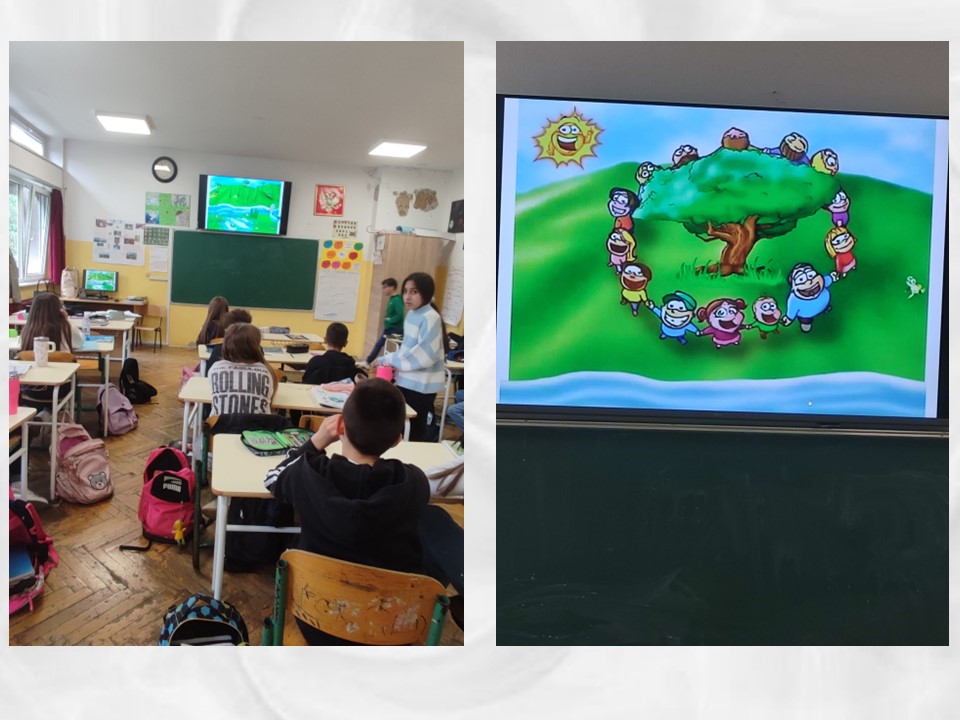 U odjeljenju V5 aktivnosti su bile raznovrsne i podsticajne. Učenici su pogledali film „Planeta nekad i sad“, razgovarali o načinima kako da se planeti vrati njen nekadašnji sjaj – čiste vode, šume i vazduh – a zatim su kroz pisanje poruka na radnim listićima izrazili svoje ideje o očuvanju prirodnih resursa. Pod sloganom „Čuvaj da te čuva“, naučili su i pjesmu istog naziva dječijeg pjesnika Dragana Radulovića.