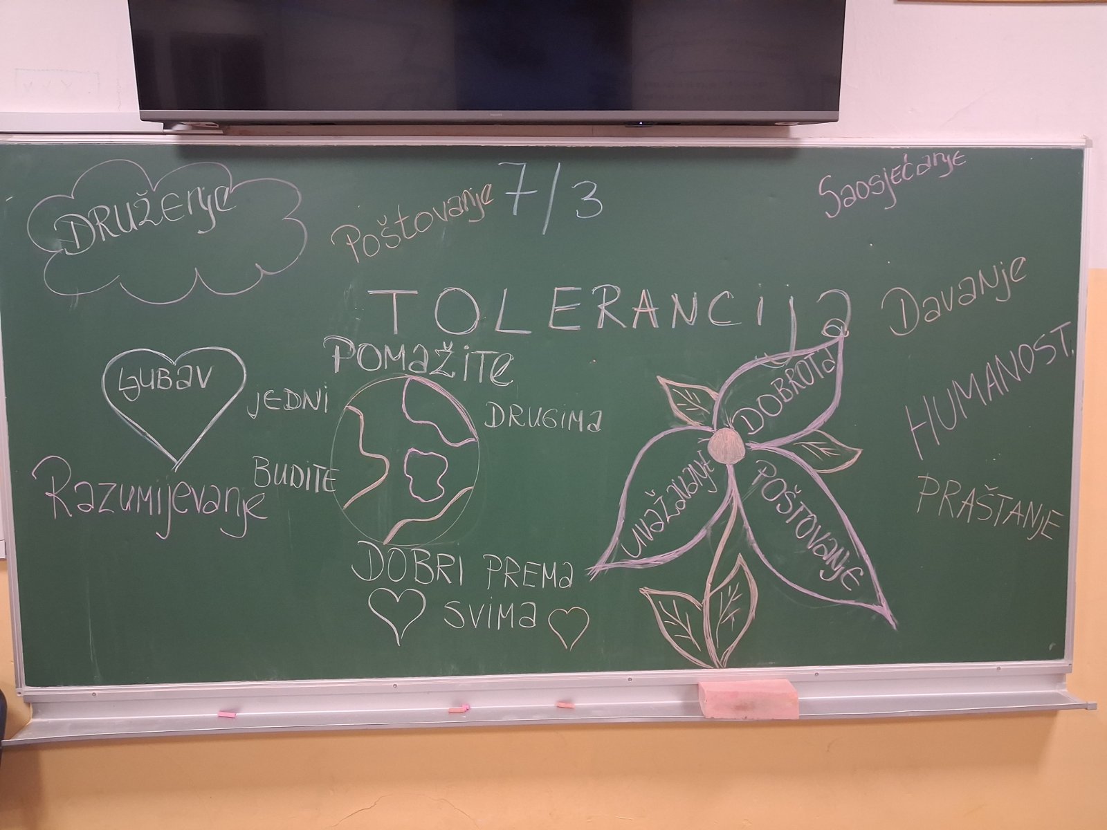 U nastojanju i želji da se ovaj značajan datum, odnosno duh tolerancije- poštovanja, prihvatanja i uvažavanja bogatstva različitosti,razumijevanja i dalje jača u našoj školi, doprinoseći odnosima koji su bogati podrškom i prihvatanjem, realizovane su brojne aktivnosti na nivou odjeljenja uz realizaciju radionice “Tolerancija” i prigodnog teksta.Sve aktivnosti na nivou škole su dorinijele daljem jačanju ideja i svega što baštini program “Moje vrijednosti i vrline”a što doprinosi razvoju socijalnih i emocionalnih vještina učenika i jačanja odjeljenske kohezije.